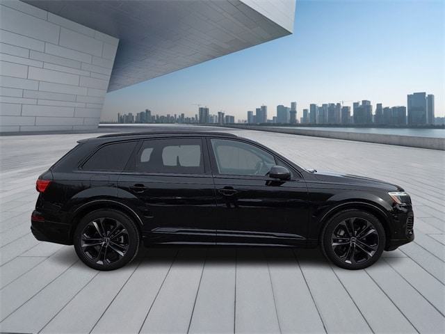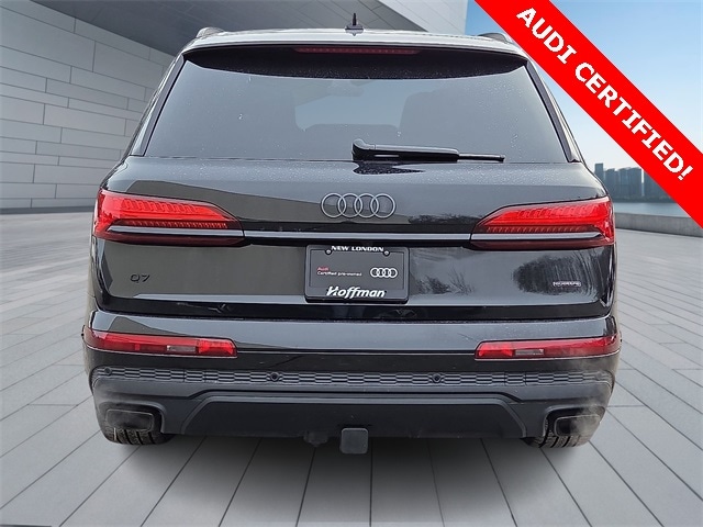 Certified. Mythos Black Metallic 2025 Audi Q7 55 Prestige quattro quattro 8-Speed Automatic with Tiptronic 3.0L TFSI RECENT HOFFMAN TRADE, CLEAN CAR FAX...NO ACCIDENTS, AUDI CERTIFIED, SERVICE RECORDS AVAILABLE, ONE OWNER, NAVIGATION GPS NAV, SUNROOF MOONROOF, REMAINDER OF FACTORY WARRANTY, 6 MONTH OR 6,000 POWERTRAIN WARRANTY, 7-Pin Adapter, Animation For Headlights and Taillights, Anthracite Gray Audi Rings, Bang & Olufsen Premium Sound System with 3D Sound, Black Door Blades, Black Exterior Trim, Black Grille, Black Optic Package, Black Roof Rails, Black Window Surrounds, Comfort Adaptive Air Suspension, Control Buttons in Gloss Black with Haptic Feedback, Convenience Package, Dark Chrome Exhaust Tips, Dual-Pane Acoustic Glass For Side Windows, Executive Plus Package, Four-Zone Automatic Climate Control, Front Passenger Memory Seat Function, Front Seats with Ventilation, HD Matrix-Design LED Headlights with Audi Laser Light, Head-Up Display, Headlight Washer System, Heated Rear Seats, Heated Steering Wheel, Illuminated Door Sills, Individual Contour Front Seats, Intersection Assist, LED Interior Lighting Package Plus, Massage Function For Front Seats, Navigation System, Navigation system: Audi MMI Navigation plus with Touch Response, Power Soft-Closing Doors, Prestige Package, Rear Door/Side Windows and Tailgate Sunshades, Remote Park Assist Plus, Top View Camera System, Traffic Sign Recognition, Trailer Hitch, Valcona/Cricket Leather Seat Trim, Wheels: 20" 5-Double-Spoke, Wheels: 21" 5-Double-Spoke-Design Matte Gray, Wireless Phone Charging Pad.