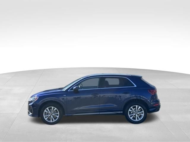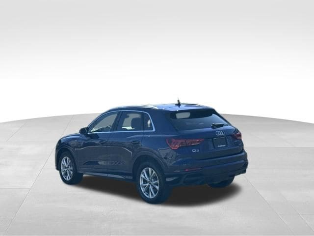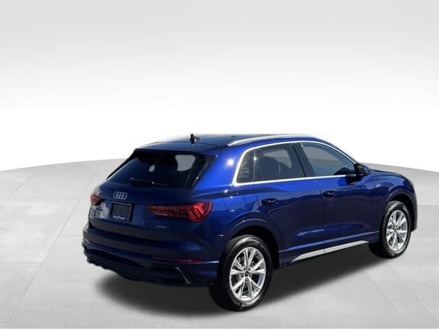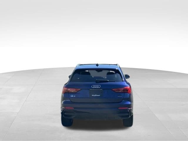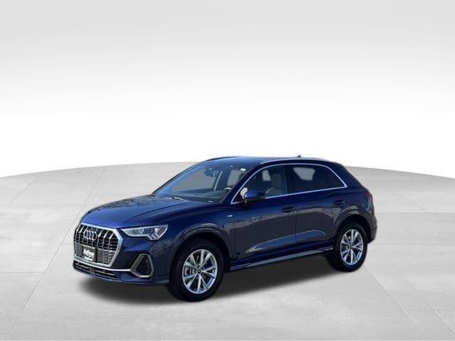 NAVIGATION GPS NAV, VERY RARE S LINE!!, ONE OWNER, CLEAN CARFAX...NO ACCIDENTS, RECENT HOFFMAN TRADE, SUNROOF MOONROOF, AUDI CERTIFIED, 10 Speakers, 4-Wheel Disc Brakes, ABS brakes, Air Conditioning, Alarm with Motion Sensor, Alloy wheels, AM/FM radio, Audi Advanced Key, Audi Beam-Rings, Audi Guard Protection Kit, Audi smartphone interface (Apple CarPlay/Android Auto), Auto High-beam Headlights, Auto-Dimming Power-Folding Exterior Mirrors, Auto-Dimming Rear-View Mirror, Automatic temperature control, Brake assist, Bumpers: body-color, Convenience Package, Delay-off headlights, Driver door bin, Driver Seat Memory, Driver vanity mirror, Dual front impact airbags, Dual front side impact airbags, Electronic Stability Control, Emergency communication system: Audi connect CARE, Exterior Parking Camera Rear, Four wheel independent suspension, Front anti-roll bar, Front Bucket Seats, Front Center Armrest, Front dual zone A/C, Front fog lights, Front reading lights, Fully automatic headlights, Garage Door Opener (HomeLink), Heated door mirrors, Heated Front Bucket Seats, Heated front seats, Illuminated entry, Knee airbag, Leather Seating Surfaces, Leather Shift Knob, Leather steering wheel, LED Interior Lighting Package, Low tire pressure warning, Occupant sensing airbag, Outside temperature display, Overhead airbag, Overhead console, Panic alarm, Passenger door bin, Passenger vanity mirror, Power door mirrors, Power driver seat, Power Liftgate, Power moonroof: Panoramic, Power passenger seat, Power steering, Power windows, Radio data system, Radio: Audi Sound System, Rain sensing wipers, Rear air conditioning, Rear anti-roll bar, Rear reading lights, Rear seat center armrest, Rear window defroster, Rear window wiper, Remote keyless entry, SiriusXM with 360L (3 Months Trial), Speed control, Speed-sensing steering, Split folding rear seat, Spoiler, Steering wheel mounted audio controls, Tachometer, Telescoping steering wheel, Tilt steering wheel, Traction control, Trip computer, Turn signal indicator mirrors, Variably intermittent wipers, Wheels: 18" 5-V-Spoke-S Design, Wireless Phone Charging Pad. CARFAX One-Owner. Clean CARFAX. Certified. Navarra Blue Metallic 2025 Audi Q3 Premium S Line quattro quattro 8-Speed Automatic with Tiptronic 2.0L 4-Cylinder TFSI