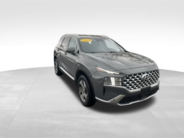 CARFAX One-Owner. Clean CARFAX. Hyundai Santa Fe SEL 2021 4-Wheel Disc Brakes, ABS brakes, Air Conditioning, Alloy wheels, Apple CarPlay & Android Auto, Auto High-beam Headlights, Brake assist, Delay-off headlights, Driver vanity mirror, Dual front impact airbags, Dual front side impact airbags, Electronic Stability Control, Emergency communication system, Exterior Parking Camera Rear, Four wheel independent suspension, Front reading lights, Fully automatic headlights, Heated door mirrors, Heated Front Bucket Seats, Illuminated entry, Low tire pressure warning, Occupant sensing airbag, Outside temperature display, Overhead airbag, Overhead console, Panic alarm, Passenger vanity mirror, Power driver seat, Power steering, Power windows, Radio: AM/FM/MP3 Display Audio, Rear seat center armrest, Rear window defroster, Rear window wiper, Remote keyless entry, Speed control, Speed-sensing steering, Split folding rear seat, Steering wheel mounted audio controls, Tachometer, Telescoping steering wheel, Tilt steering wheel, Traction control, Trip computer, Variably intermittent wipers, YES Essentials Stain-Resistant Cloth Seat Trim.