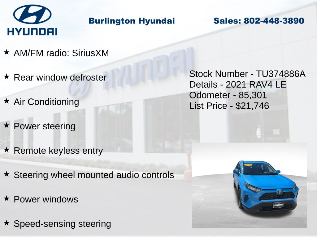 2021 RAV4 LE 2.5L 4-Cylinder DOHC Dual VVT-i AWD 27/34 City/Highway MPG CARFAX One-Owner. Clean CARFAX.